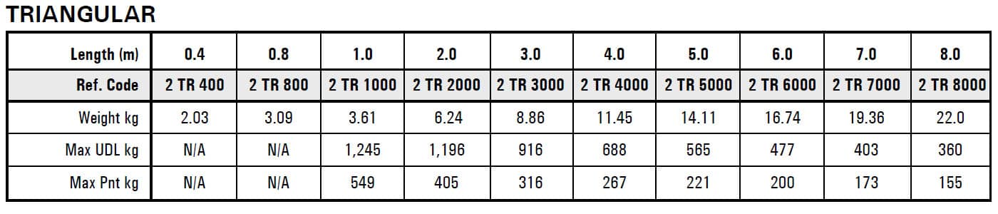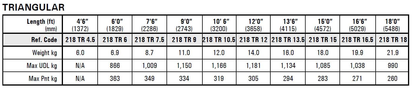Explore detailed loading tables for Trilite UK trusses. Access safe load capacities, span information, and structural specifications for all standard systems designed and manufactured in the UK.