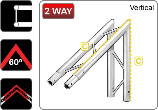 Trilite 200 Series Ladder Truss 2 Way Junction 60° Vertical.