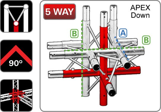 212 Triangular Truss 5-Way Junction ‘Center’ – Apex Down